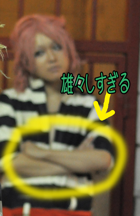 前にジャンさんがいて、私ルキが後ろにいるっていう写真なんですが、どの写真を使うか話しあっていたときに、発覚した私の腕が雄々しくすぎる件について、撥春に完全に男wwwwwwwと爆笑されたので、どうかみなさんも笑ってください^0^